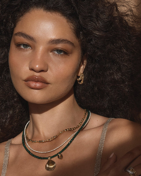 The Lucca Earrings give the look of two earrings in one. Featuring a double rectangular hoop in our signature crush textured 24K Gold plating.