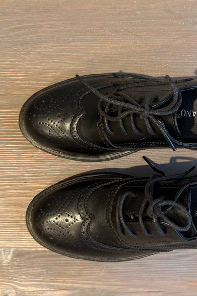 Classic derby shoes with perforated detailing and chunky sole. Lace-up fastening and round toe.